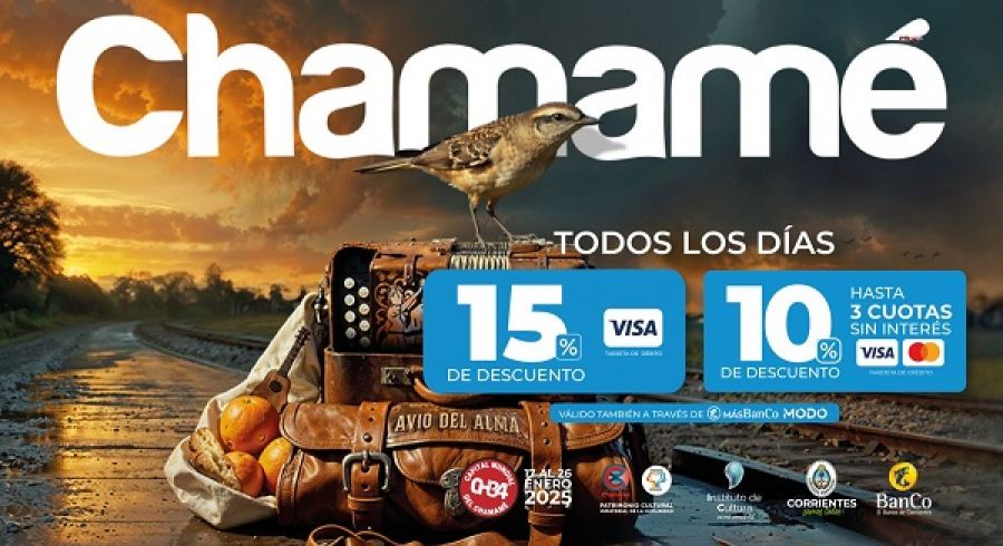 Los clientes de la entidad financiera correntina podrán acceder a un 15% de descuento con tarjeta de débito Visa del Banco de Corrientes y 10% pagaderos en hasta 3 cuotas sin interés con tarjetas de crédito Visa y Mastercard para adquirir sus entradas. La promoción tiene vigencia desde hoy sábado 21 de diciembre, hasta el domingo 26 de enero inclusive, todos los días.