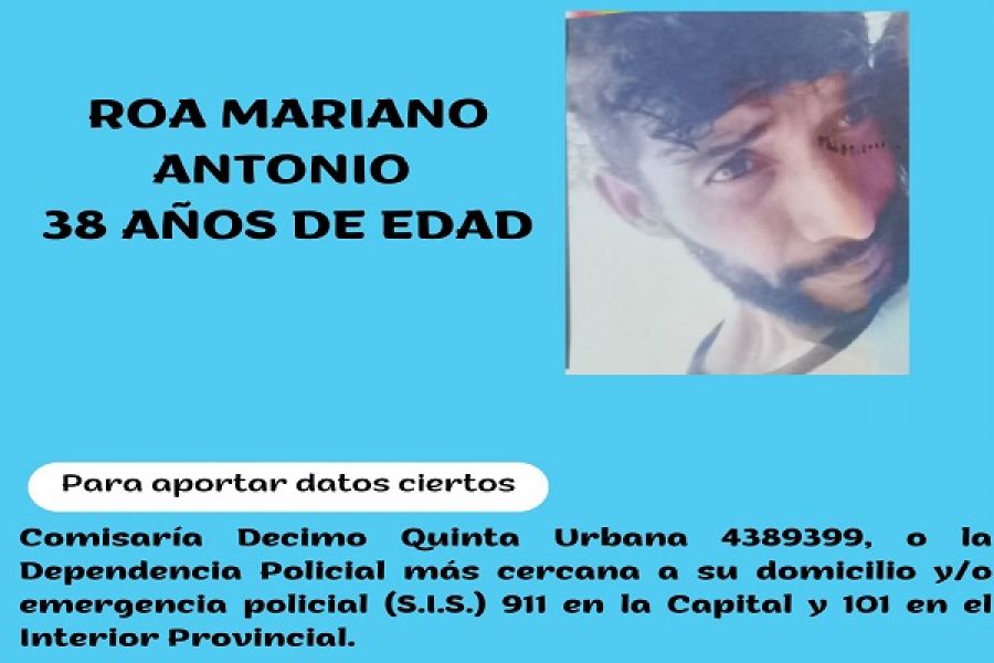 La Comisaría Urbana Décimo Quinta de Corrientes solicita la colaboración ciudadana en la búsqueda y localización de Mariano Antonio Roa
