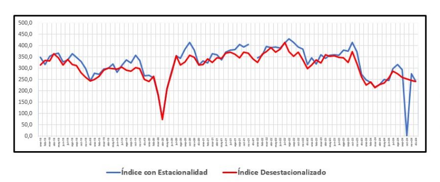 De esta forma, el acumulado de enero-diciembre de 2024 cerró 27,2% por debajo del mismo período del año anterior.