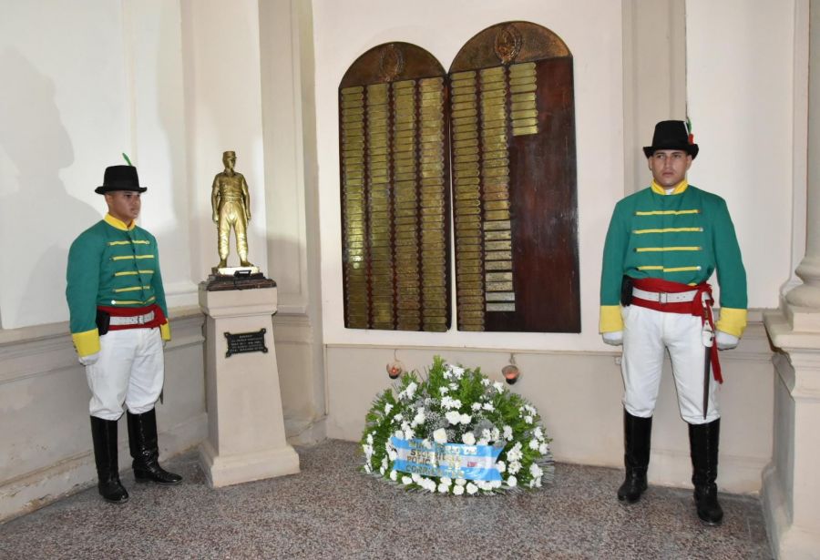 El capellán de la institución, presbítero Guillermo Danuzzo, realizó una invocación religiosa frente a las placas que inmortalizan los nombres de los caídos. Como gesto simbólico, se depositó una ofrenda floral al pie del espacio dedicado a su memoria.
