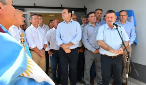 Luego, las autoridades se trasladaron unos 100 metros hasta el Museo Municipal, donde se preparó el acto frente al mismo, con la presencia de una nutrida comitiva de funcionarios, legisladores y vecinos que presenciaron el acto en sillas dispuestas sobre la calle.