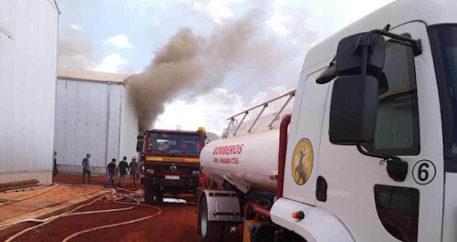 El incendio se declaró a la siesta del sábado sobre Ruta 71, en un galpón de la cooperativa Playadito