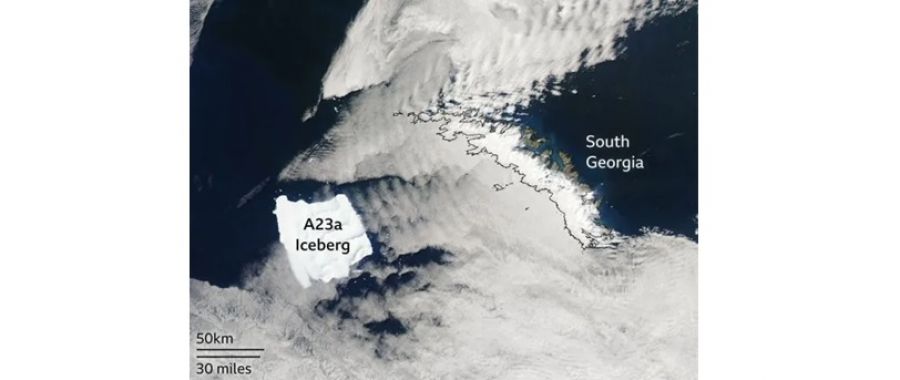 Inicialmente, su ruta parecía dirigirlo directamente hacia la isla, lo que suscitó preocupaciones sobre los posibles daños que podría ocasionar al ecosistema marino local. Sin embargo, el 1 de marzo de 2025, el A23a se detuvo a unos 73 kilómetros de la isla, lo que sorprendió a muchos, ya que no se había previsto que el iceberg quedara atrapado en este punto.
