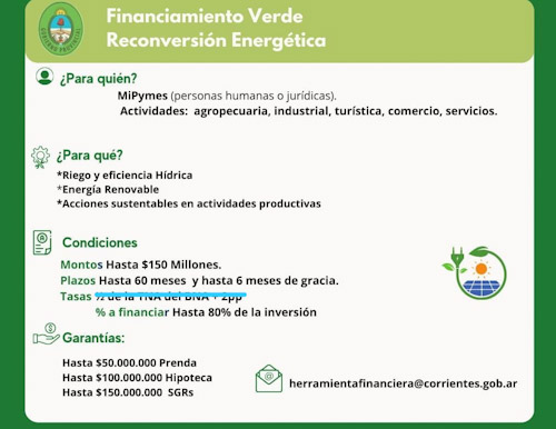 El financiamiento Reconversión Energética se encuentra dirigido a MiPymes (personas humanas y físicas) y para las actividades agropecuarias, industriales, turísticas, comercios y servicios.