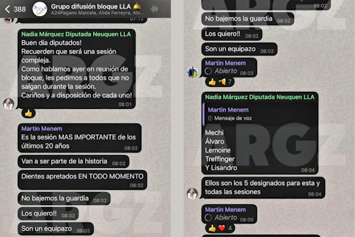 Mientras en chats que también se divulgaron puede leerse" Es la sesión más importante de los últimos 20 años para ser parte de la historia. Dientes apretados. No bajemos la guardia"