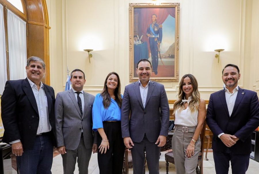 El gobernador Gustavo Valdés este martes en su Despacho de Casa de Gobierno junto a los intendentes de Ituzaingó, Juan Pablo Valdés, de Curuzú Cuatiá, José Irigoyen, de Esquina, Hugo Benítez y de Bella Vista, Noelia Bazzi y la directora general del Teatro Vera, Lourdes Sánchez firmaron un acuerdo para refaccionar espacios culturales de la provincia.