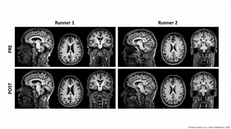 Para probar si ocurre lo mismo en humanos, los investigadores hicieron resonancias magnéticas a diez corredores de maratón (ocho hombres y dos mujeres) antes y 48 horas después de que hicieran una carrera de 42 kilómetros.