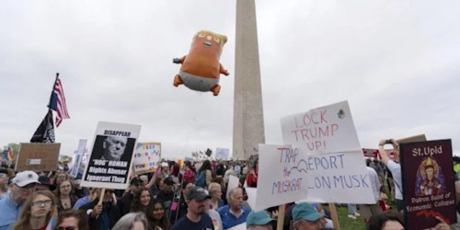 La protesta, dirigida especialmente contra Trump y su mano derecha, el magnate Elon Musk, ideólogo del recorte masivo del Gobierno, fue la primera gran manifestación desde que el líder republicano regresó a la Casa Blanca el 20 de enero.