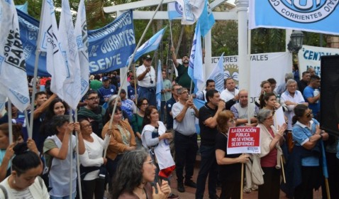 La marcha tuvo lugar en las inmediaciones del parlamento y se llevó a cabo en la previa del paro general convocado para mañana por la central obrera, donde se espera que la adhesión se vea mermada por la negativa de la UTA a sumarse a la medida de fuerza.