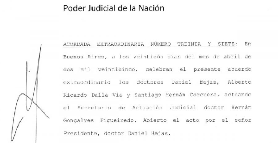 La acordada está firmada por los mimberos de Cámara Nacional Electoral Santiago Corcuera, Alberto R. Dallas Vía y Daniel Bejas