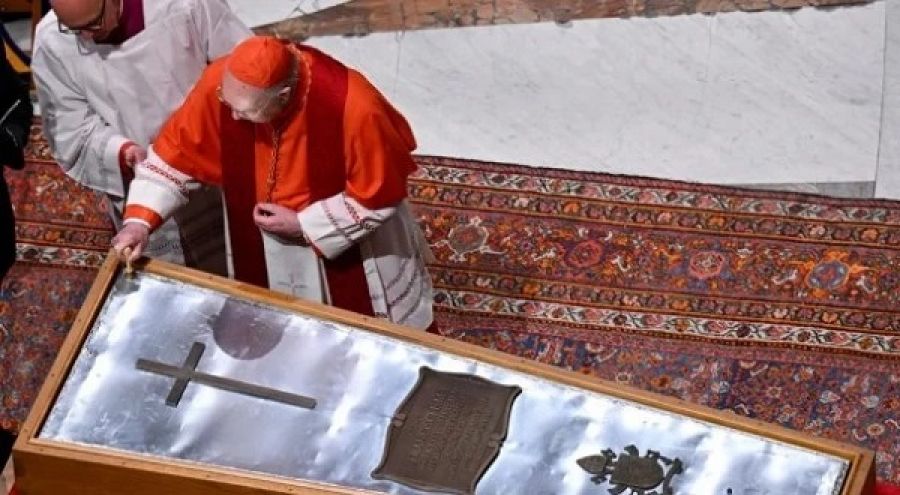 El ataúd se selló y se imprimieron los sellos del cardenal camarlengo, de la Prefectura de la Casa Pontificia, de la Oficina de las Celebraciones Litúrgicas Pontificias y del Capítulo Vaticano.