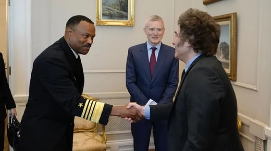 El presidente Javier Milei recibió al jefe del Comando Sur de los Estados Unidos, Almirante Alvin Holsey y a su comitiva en la Casa Rosada. Del encuentro también participó el ministro de Defensa, Luis Petri.