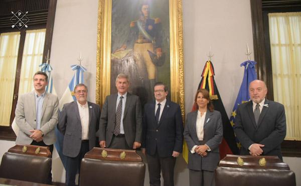 El saludo protocolar tuvo lugar en el salón de Acuerdos del Palacio legislativo, en el marco de la celebración en la región, por los 200 años de inmigración alemana. Acompañaron los senadores Enrique Vaz Torres y Sonia Quintana, junto a autoridades de la Embajada.