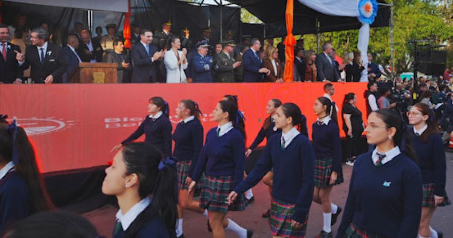 El gobernador Gustavo Valdés junto a la intendenta, Noelia Bazzi presenció del desfile cívico-militar por las celebraciones de los 200 años de Bella Vista