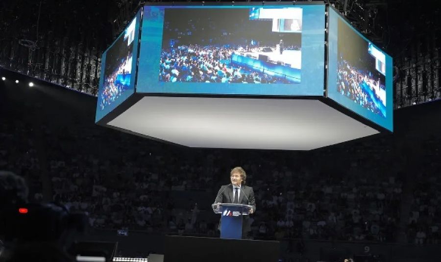 Milei también afirmó que su gestión busca modificar el sistema impositivo, y que, si es reelecto, "podríamos estar bajando más de un punto del PBI y devolverle a los argentinos más de u$s500 mil millones", señaló en su discurso de aproximadamente una hora.