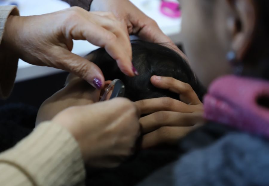 El miércoles por la mañana, la paciente fue Eugenia, una niña de un año de Virasoro. Tenía colocado un audífono y este fue el segundo. La están evaluando para la colocación de implante coclear.