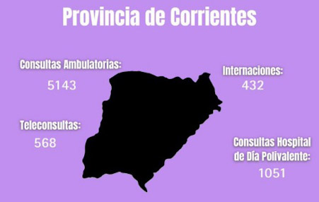 En el caso de la provincia de Corrientes, se detalló que se hicieron 5.143 consultas externas, que implicaron 1.051 sesiones de hospital de día, 432 internaciones, 188 cirugías, 3 trasplantes y 568 teleconsultas, entre otras atenciones.
