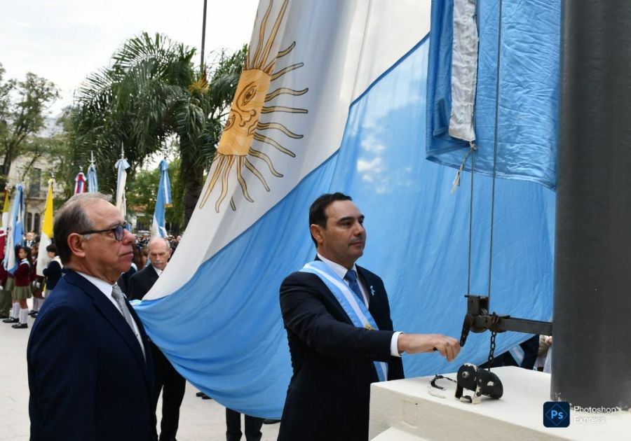 Luego, en la plaza 25 de Mayo, continuaron los actos para izar el pabellón nacional y recordar la efeméride de la Independencia argentina.