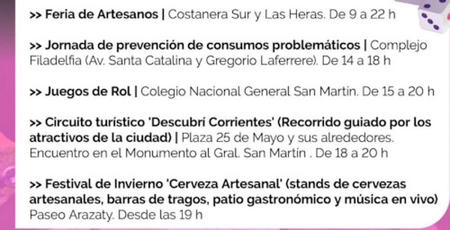 En esta segunda semana de vacaciones de invierno, vecinos y visitantes podrán disfrutar de las propuestas totalmente gratuitas organizadas por la Municipalidad de Corrientes. Entre ellas, el Festival de Invierno de Cerveza Artesanal en Paseo Arazaty, y las ya tradicionales, ferias, recorridos guiados y peñas.