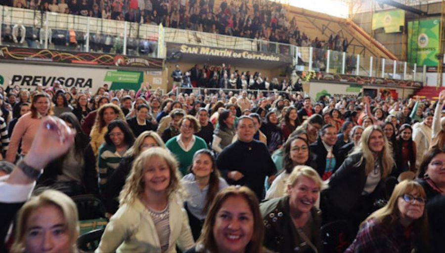 La especialista dictó un taller en el Club San Martín, para más de 3 mil personas, oportunidad en la que la titular de la cartera educativa Práxedes López hizo hincapié en la importancia del docente para lograr una verdadera transformación educativa.