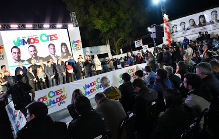 El frente gobernante Vamos Corrientes realizó el jueves un acto de campaña en la localidad de Perugorría con compromisos de mantener la obra pública y defender la educación.