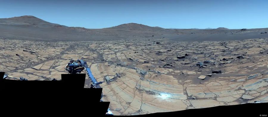 "Los cielos relativamente libres de polvo proporcionan una visión clara del terreno circundante. Y en esta imagen en particular, hemos mejorado el contraste de color, lo que acentúa las diferencias entre el terreno y el cielo", afirma Jim Bell, investigador principal de Mastcam-Z, en la Universidad Estatal de Arizona.