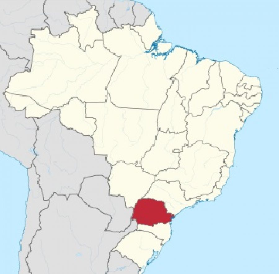 Estado de Paraná, en Brasil marcado en rojo