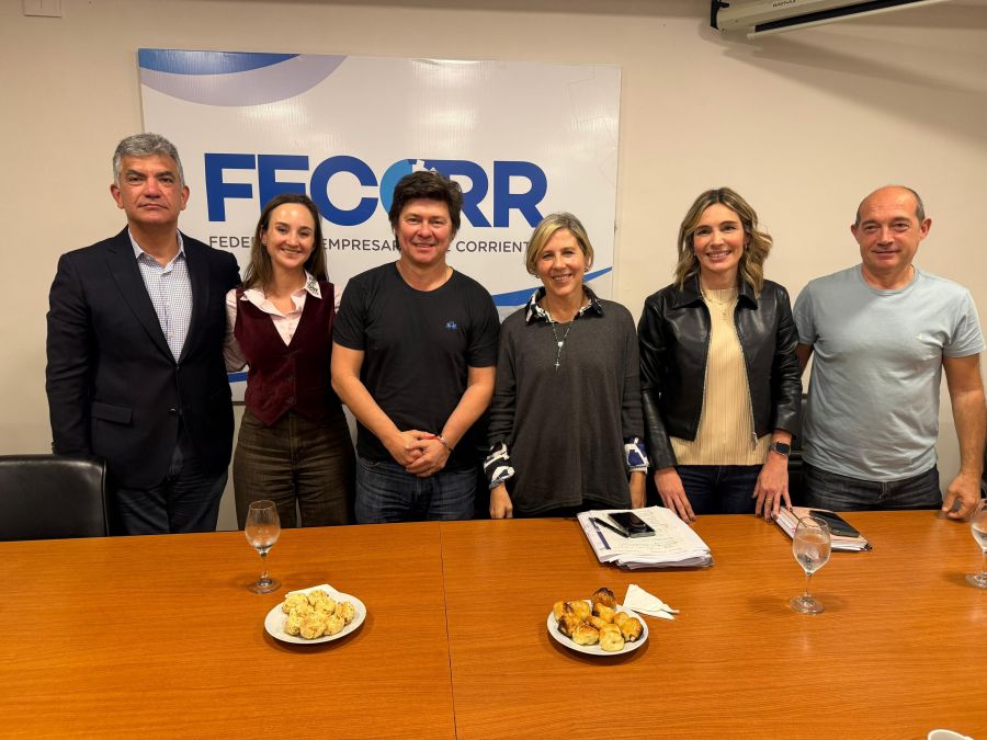 El candidato a gobernador por La Libertad Avanza, Lisandro Almirón, presentó sus propuestas ante la Federación Empresarial de Corrientes (Fecorr), en un encuentro acompañado por la candidata a vicegobernadora Evelyn Karsten, la postulante a intendente de la capital Any Pereyra y el candidato a viceintendente Flavio Serra.