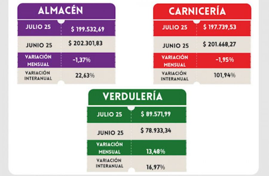 El Instituto de Investigación Social, Económica y Política Ciudadana (ISEPCi) informó que en julio de 2025 la Canasta Básica Total (CBT) alcanzó los $ 1.110.004,80, un aumento mensual del 0,82% o $ 8.985 respecto a junio y una variación interanual del 48,28%, equivalente a $ 361.405 más que en julio de 2024.