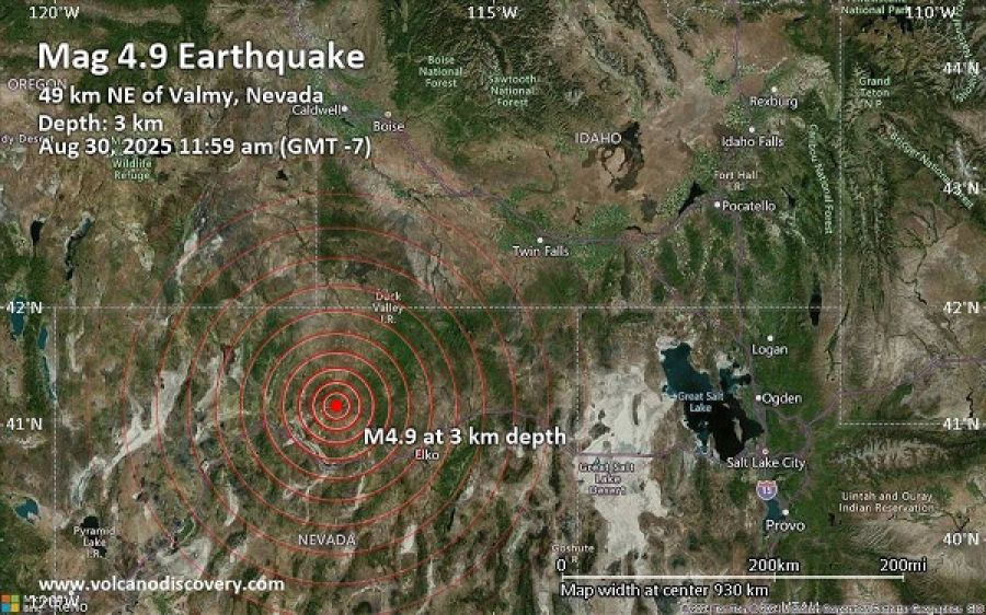 Un sismo de magnitud 5,3 en la escala de Richter sacudió una zona a 50 kilómetros al noreste de Valmy, en el estado estadounidense de Nevada, a las 18:59 GMT del sábado, informó el Servicio Geológico de Estados Unidos.