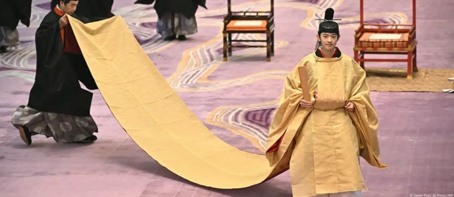 Durante la misma, que arrancó poco antes de las 10:00 hora japonesa, Hisahito vistió un atuendo tradicional en tono amarillo característico de los menores de edad, con una cola de 6 metros de largo, durante la que fue 'coronado' con el tocado en presencia del emperador Naruhito y su esposa, la emperatriz Masako.
