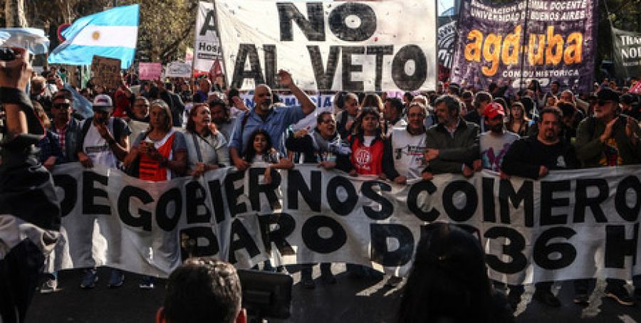 En tanto, docentes de las distintas universidades públicas del país concretaron un paro y movilización en rechazo al veto de la ley de Financiamiento universitario y preparan la tercera Marcha Federal Universitaria para el miércoles próximo, cuando se trate en el Congreso el rechazo a ambas decisiones del Poder Ejecutivo.