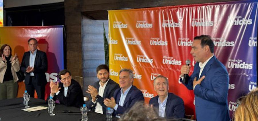 Provincias Unidas está integrado por los gobernadores Martín Llaryora (Córdoba), Maximiliano Pullaro (Santa Fe), Gustavo Valdés (Corrientes), Ignacio “Nacho” Torres (Chubut), Carlos Sadir (Jujuy) y Claudio Vidal (Santa Cruz).