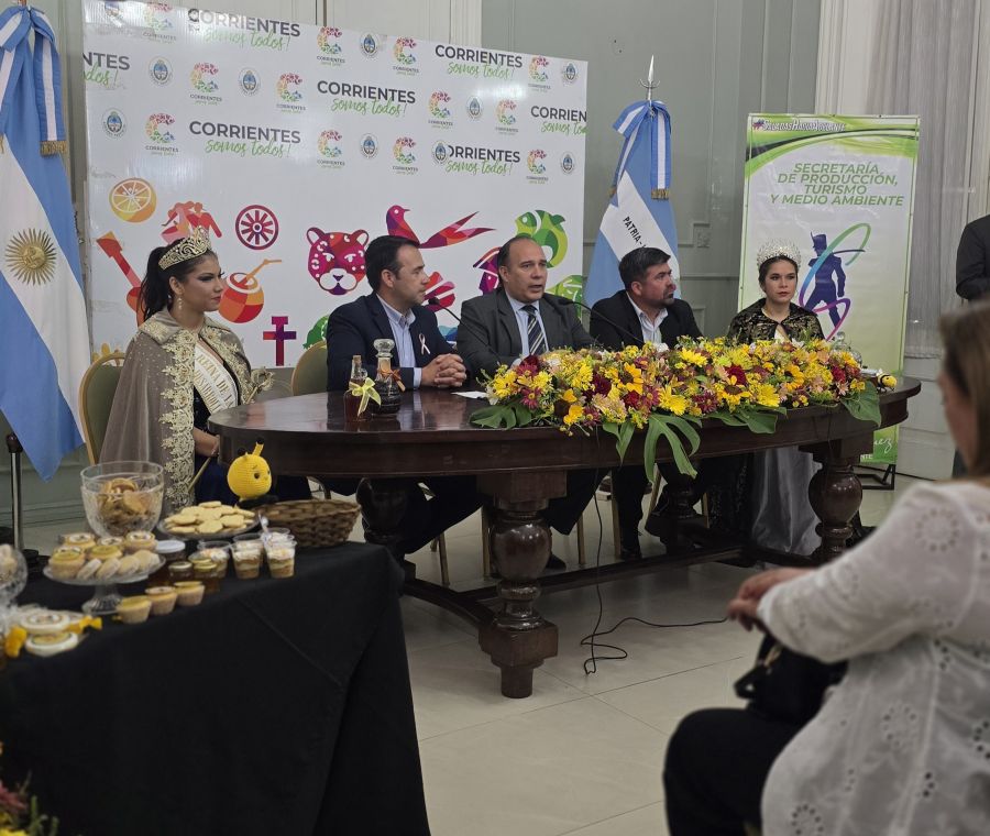 En conferencia de prensa realizada este miércoles en el Salón Verde de Casa de Gobierno dieron a conocer detalles de la tradicional celebración de carácter cultural, productiva y turística. Estuvieron presentes el Intendente de Saladas Noel Gómez, el subsecretario de Promoción e Inversiones Turísticas Augusto Costaguta, el secretario de Producción, Turismo y Medio Ambiente municipal Marcos Ríos, la actual Reina de la Miel y el Desarrollo Emprendedor Ariana Cañete y la Miss Saladas Claudia Ojeda.