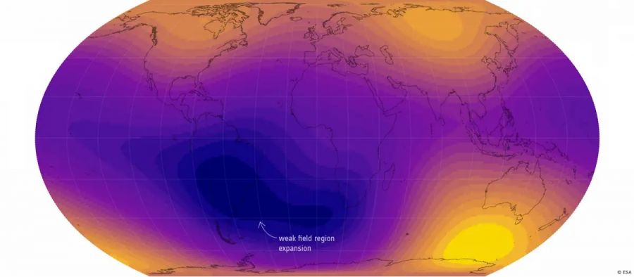 La Anomalía del Atlántico Sur (AAS), una región del tamaño de Europa situada entre Sudamérica y África, se ha ido agrandando y debilitando su intensidad magnética desde 2014, apuntan los autores.