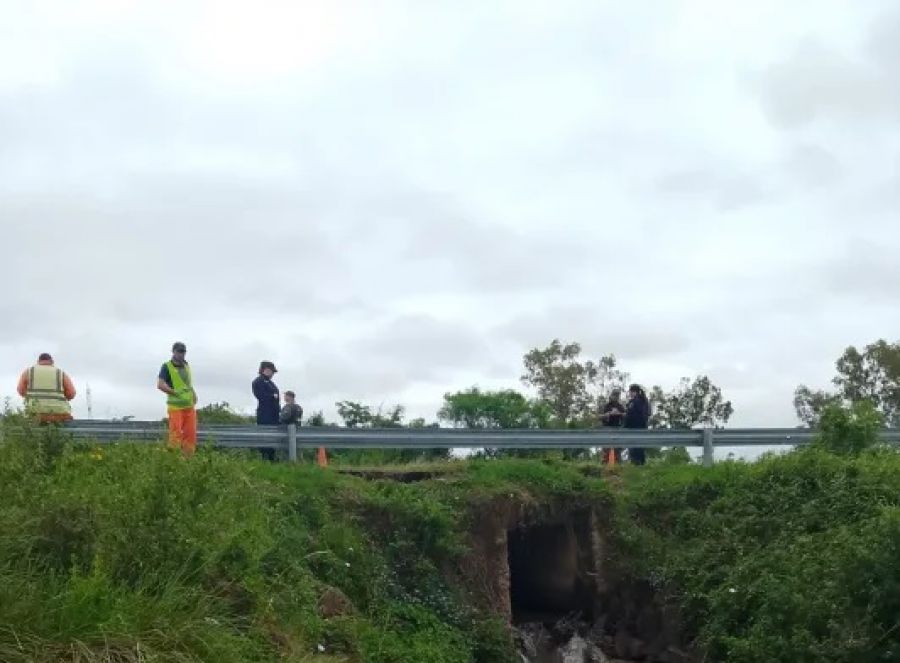 Vialidad Nacional informó que producto de las intensas lluvias que afectaron a la región en las últimas horas, se ha producido un socavón de la alcantarilla ubicada en el kilómetro 1187 de la Ruta Nacional 12.