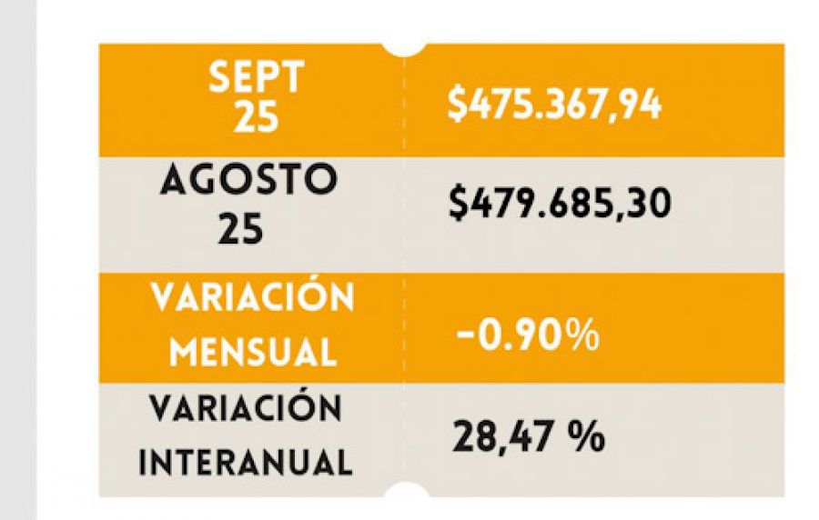 Una familia integrada por dos adultos y dos niños que en septiembre de 2024 necesitaba $ 370.023,93 para adquirir la CBA, en septiembre de 2025 requirió $ 475.367,94, es decir, $ 105.344,01 más para comprar los mismos productos.
