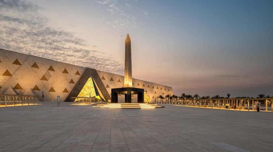 La construcción del museo inició en 2005, pero el proyecto enfrentó numerosos retrasos a lo largo de los años debido a la inestabilidad política y a los desafíos de su financiación. Ahora que está terminada, la instalación combina un diseño arquitectónico moderno con elementos inspirados en el antiguo Egipto, y cuenta con amplias salas y tecnologías de exposición de última generación.