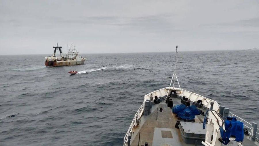 Integrantes de la flota de pesca ilegal china, dichos buques también han sido expuestos por efectuar capturas de especies marinas protegidas, como el caso del ejemplar de elefante marino juvenil capturado frente a la Patagonia Argentina en 2020.
