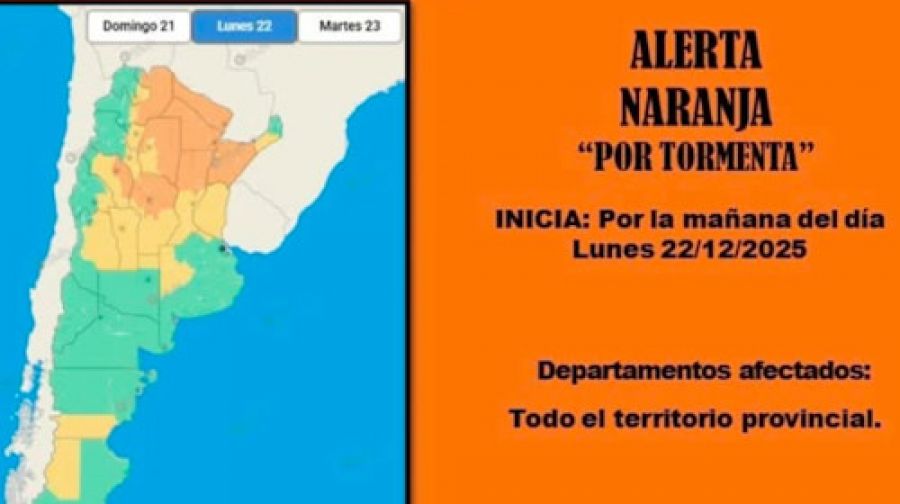 El Comité Operativo de Emergencias (COE) dependiente del Gobierno de Corrientes, emitió un Alerta Naranja “por fuerges tormentas” para la mañana de este lunes. Afectará a todo el territorio provincia.