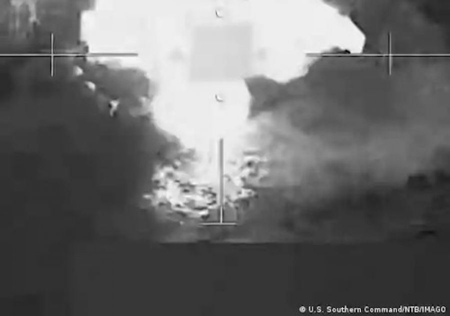 La publicación incluye un video en blanco y negro del llamado "ataque cinético letal" contra una embarcación, en el que parecen verse dos destellos explosivos y restos en llamas.