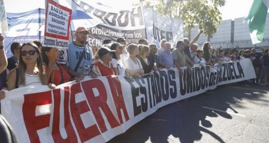 La Asociación de Trabajadores del Estado (ATE), el Frente de Izquierda y la CTA Autónoma marcharon hacia Plaza Italia, en el barrio de Palermo, cerca de la Embajada de Estados Unidos en Argentina, para repudiar la intervención de ese país en Venezuela.