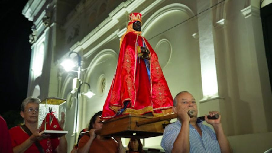 Al ritmo de tambores y batucada, las celebraciones en honor a San Baltasar culminaron ayer con una procesión por las calles del barrio Camba Cuá. Como broche final, en el parque homónimo un show de comparsas le puso ritmo carnestolendo a tres días a puro festejo para rendir culto al santo cambá.