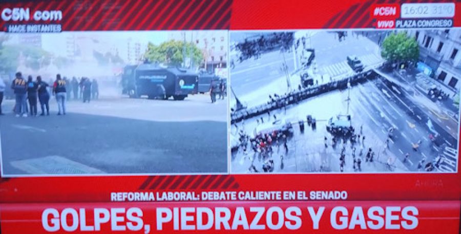 La movilización tenía ligar mientras en el Senado se debatía la reforma laboral, un proyecto rechazado por el peronismo y por organizaciones sindicales como la CGT y las dos CTA.