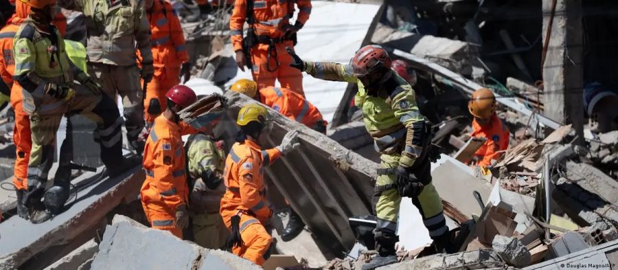 Imágenes divulgadas por el organismo muestran una edificación completamente derrumbada y decenas de efectivos sacando a una persona con vida en una camilla, mientras vecinos aplauden.