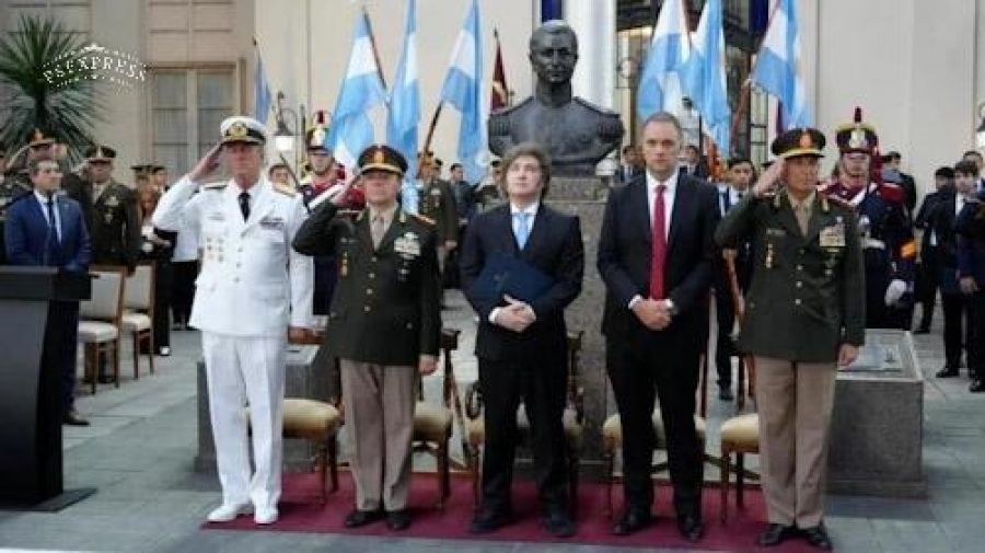 Del acto también participaron la secretaria general de la Presidencia, Karina Milei; el jefe de Gabinete, Manuel Adorni; y el ministro de Defensa, Carlos Presti.