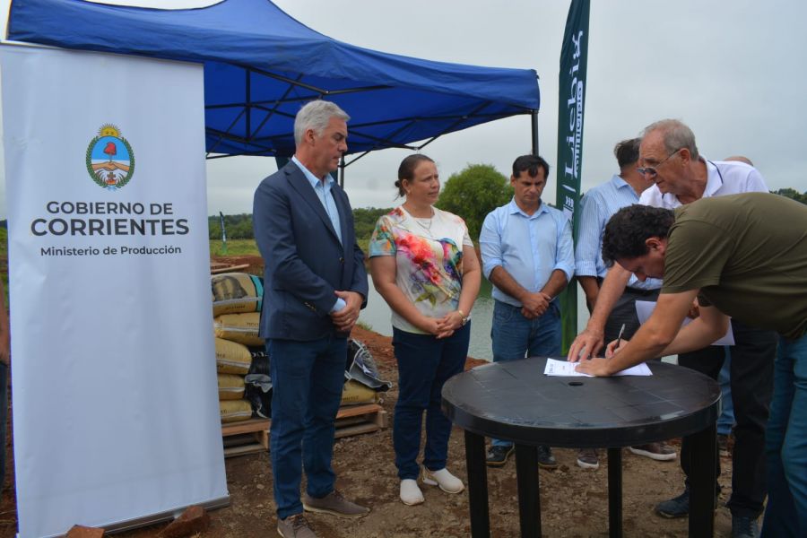 En la jornada del jueves se realizó la firma de convenio para la continuidad de la ejecución del programa y además se entregó alimento balanceado para peces a productores. También se procedió a la suelta de un importante número de alevines en uno de los emprendimientos.