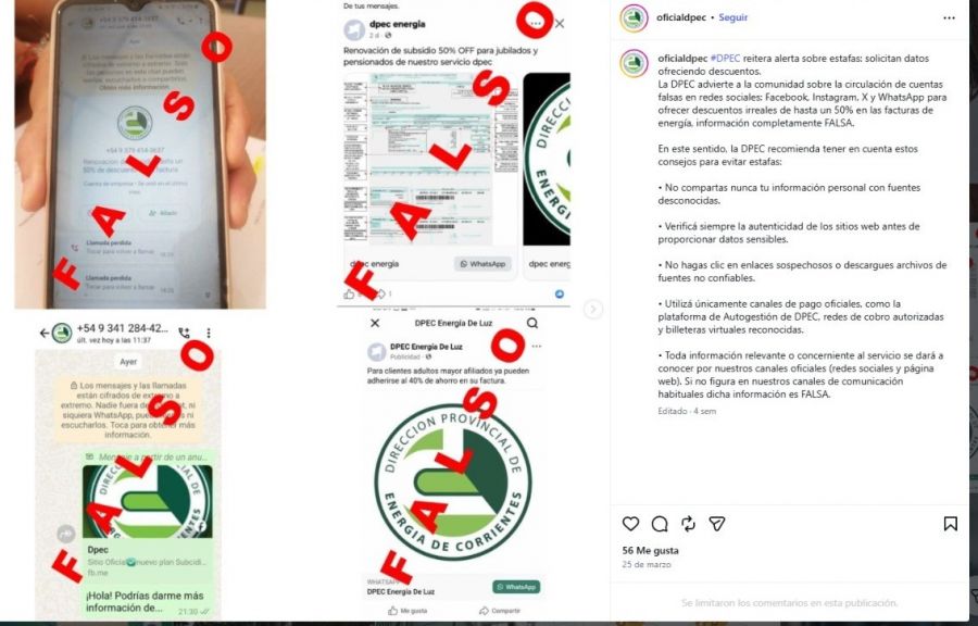 La asociación remarcó además que los descuentos promocionados son apócrifos y que no forman parte de ningún programa oficial impulsado por la empresa energética provincial. “Queremos alertar que estos supuestos descuentos son totalmente falsos”, señalaron desde la entidad, al tiempo que insistieron en la necesidad de extremar precauciones frente a cualquier solicitud de información privada.