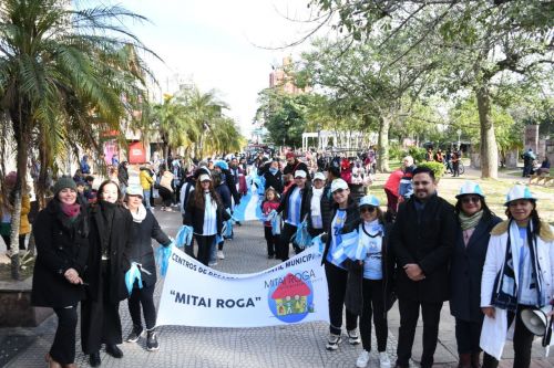Con banderas y vestimenta celeste y blanca, los CDI desfilaron por la peatonal Junín