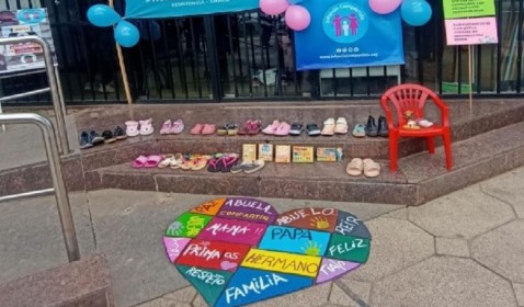 Intervención artística frente a tribunales de Familia en reclamo de revinculaciones dilatadas